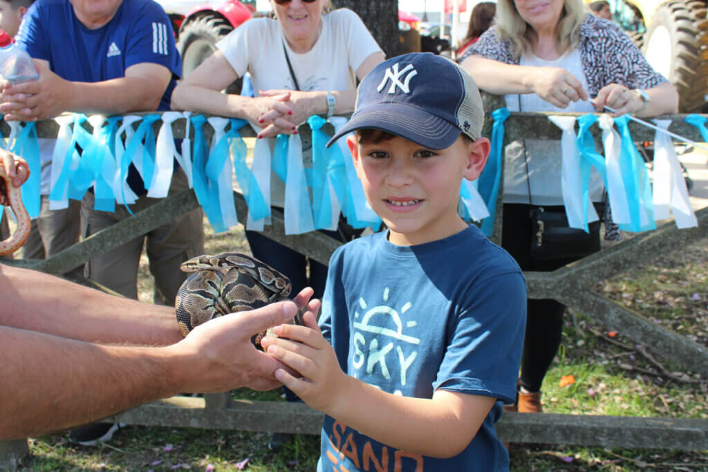 “Hacemos intervenciones asistidas con animales para personas con discapacidad o con necesidades afectivas o psicológicas, pero también en escuelas, hogares de ancianos, en algún momento fuimos a centros penitenciarios”, comienza contando Facundo uno de los 40 integrantes que tiene este espacio especial que llegó a la Sociedad Rural de Rafaela, con perros, una gatita ciega, un ratón y tres serpientes, dóciles y a disposición de ser abrazados por quienes se acercaran.